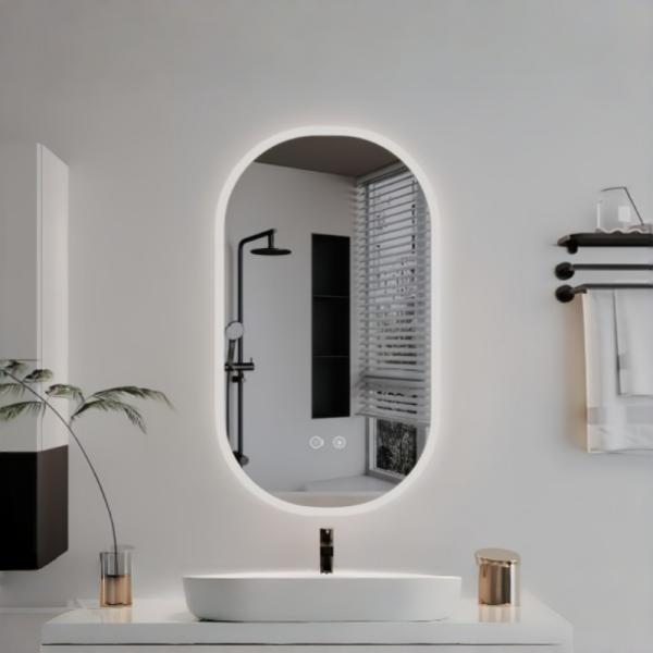 Minimalist Capsule Design: Elegant curved edges break the rigidity of traditional square mirrors, visually extending ceiling height and adding fluidity to modern bathroom spaces.